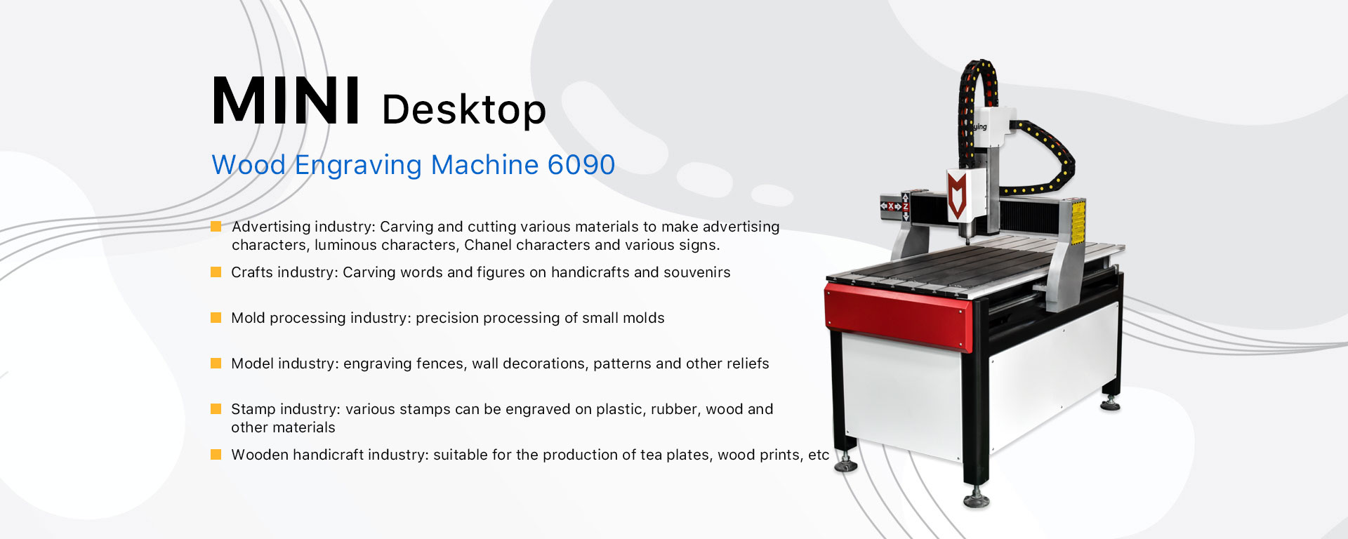 RY-C6090迷你雕刻机是一款适合DIY爱好者的机型,性价比高,体积小,加工精度高,加工范围广,可加工各种木材、金属、石材、亚克力、PVC、ABS等材料。