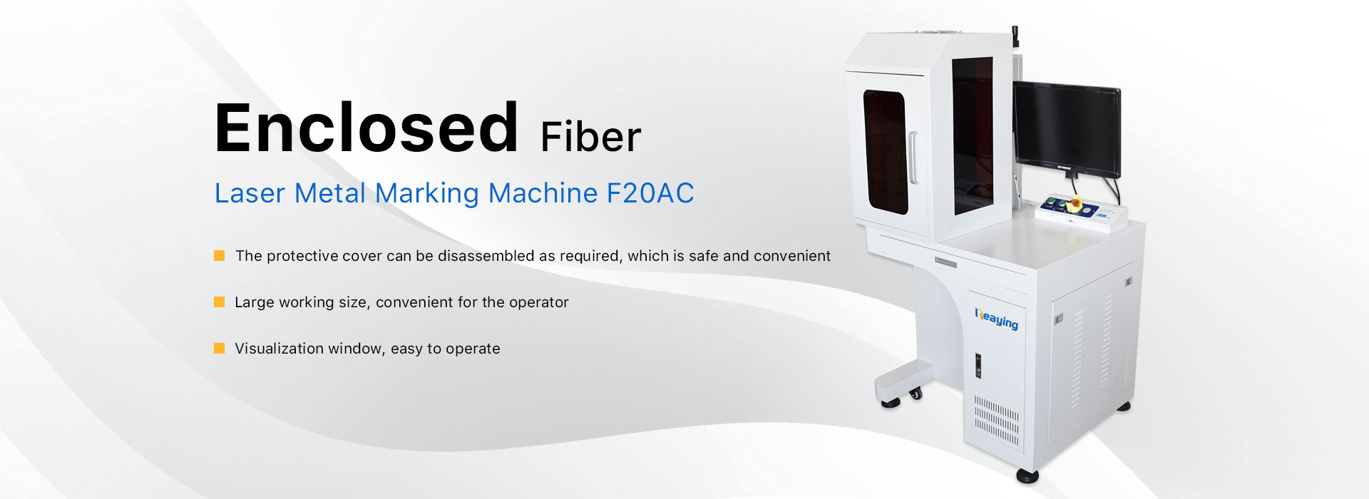 半封闭式光纤激光打标机,在台式光纤激光打标机的基础上增加了一个半封闭的机柜,半封闭式光纤激光打标机的成本比全封闭式光纤打标机低,而且包装体积更小,适合空运、快递运输,安全便捷。