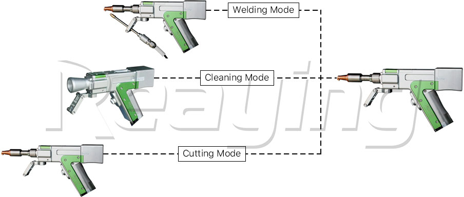 Mit dem intelligenten System von Reaying Laser Welder können Sie die Laserreinigungsfunktion nutzen, indem Sie einfach schnell in einen Modus wechseln und die exklusiven Zubehörsätze für die Laserreinigung installieren, die mit der Maschine geliefert werden.