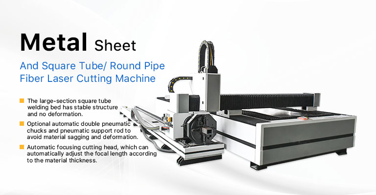 Die integrierte Faserlaserschneidemaschine für Platten und Rohre wird auch als integrierte Laserschneidemaschine für Platten und Rohre bezeichnet. Dabei kommt eine Mehrzweck-Laserschneidmaschine für Rohre und Platten zum Einsatz, die Vierkantrohre, Rundrohre, abgeflachte Rohre, speziell geformte Rohre und das Schneiden von Blechen in einer Maschine vereint. Es hat mehrere Funktionen und der Drehaufsatz verfügt über ein Stützsystem, das sicherstellen kann, dass das 3–6 Meter lange Rohr nicht verformt wird und keine Verschwendung entsteht. Es handelt sich um eine hochgelobte und empfohlene Mehrzweck-Faserlaserschneidemaschine für Rohre und Bleche.