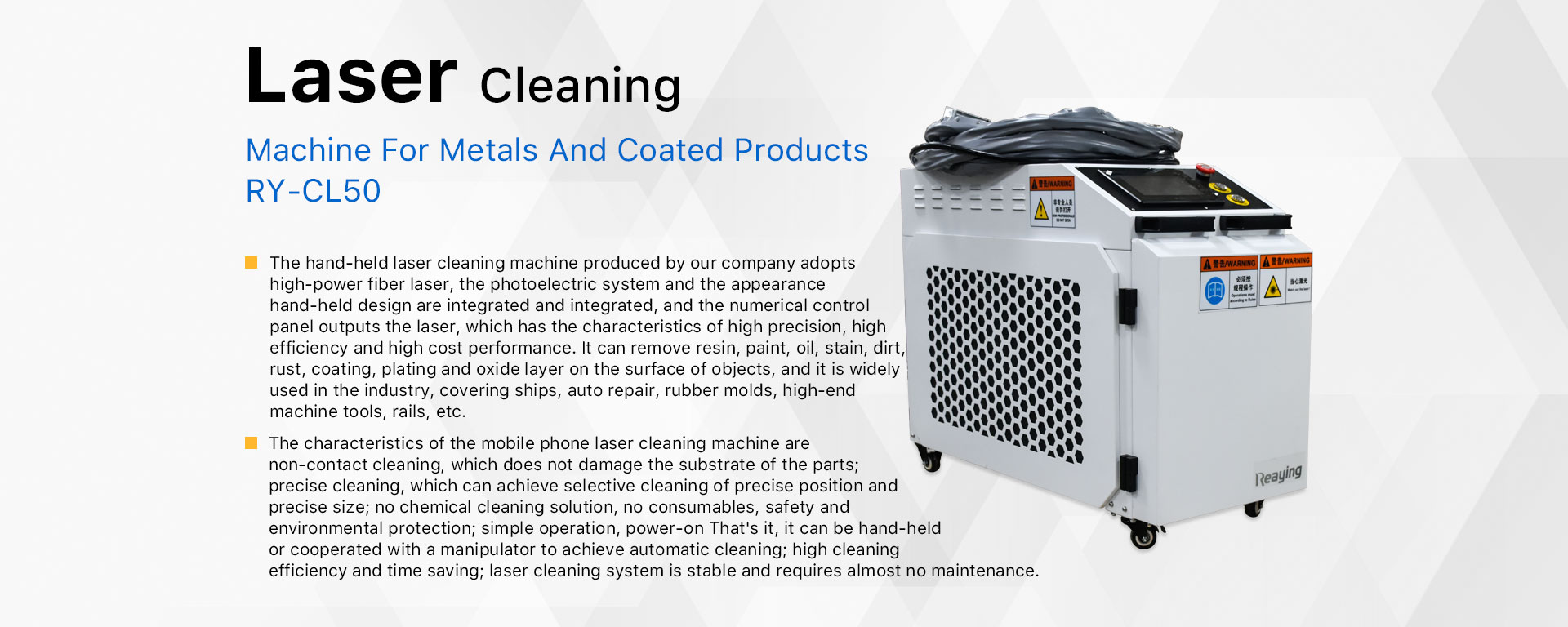 Machine de nettoyage laser Reaying pour métaux et produits revêtus RY-CL50