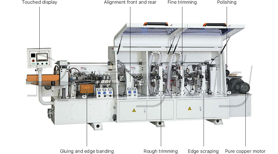 Полностью автоматический станок для двойной обрезки и кромкооблицовки подходит для прямой облицовки кромок массивной древесины, ДВП, ДСП и других заготовок из плит. Материалом для облицовки кромок могут быть полосы из массива дерева, ПВХ, меламин, тонкий шпон и т. д. Машина подходит для деревообработки, например, для изготовления панельной мебели и мебели по индивидуальному заказу. Промышленность является важной частью производственной линии по деревообработке.